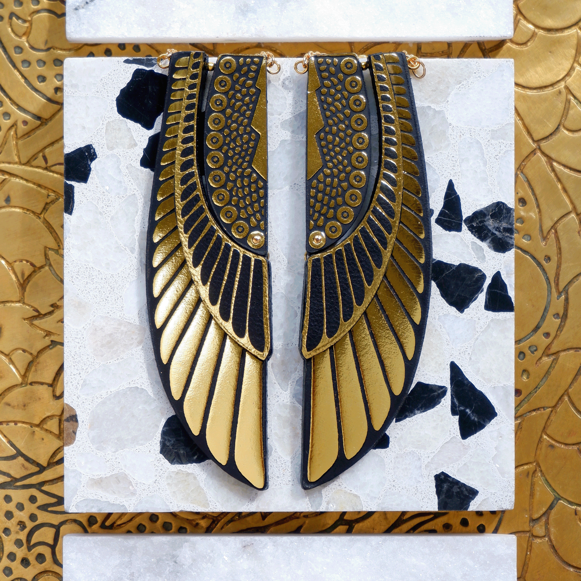 These stunning Art Deco-inspired Sacred Scarab Wing earrings will make you feel like a true glamour queen.
