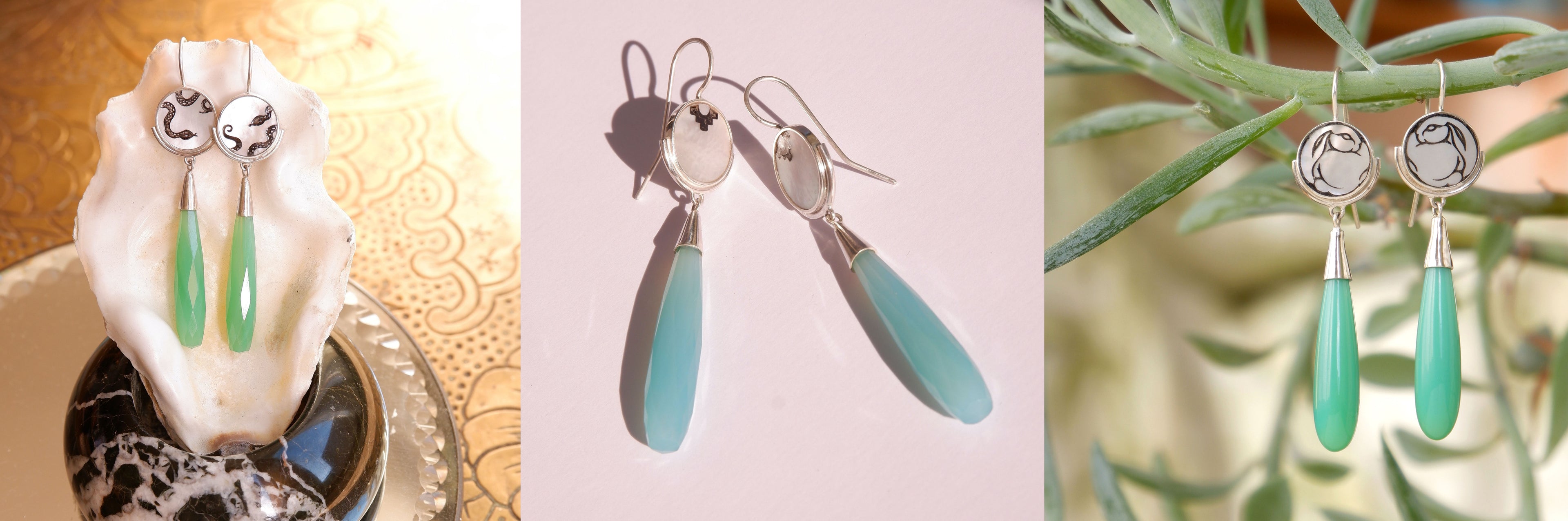 BAMBOO SUNRISE . hook earrings / O.O.A.K. / various stones