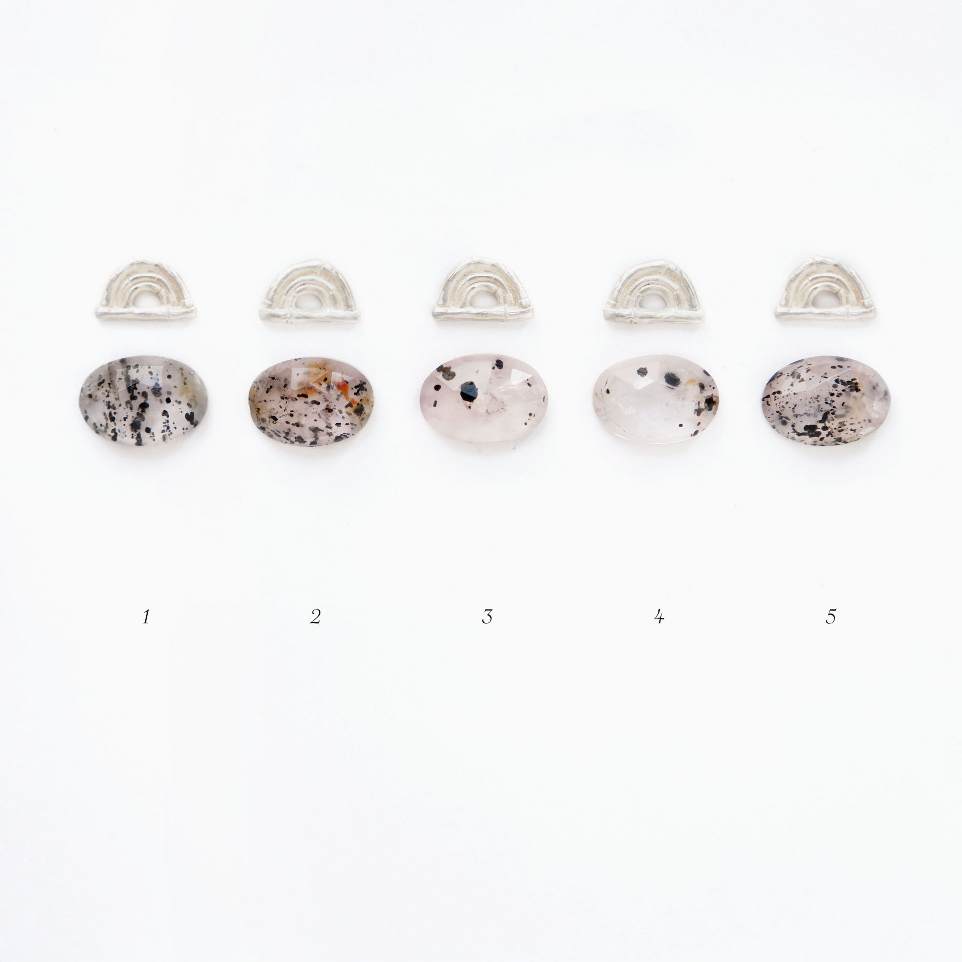 These modern amulets, with echoes of ancient cultures, are centred around beautiful semi-precious stones. These are chosen for their colour, as well as individual characteristics - mellow mid-tones, punchy pastels, earthy neutrals, bold blacks and milky whites, often patterned with inclusions of marbling, speckles or swirls. The gemstones, formed by epic forces and natural mineral magic, are hidden underground for millennia, before incredibly, been unearthed, transported, cut, polished and made in to timeless treasures for you to keep close, and hold dear.